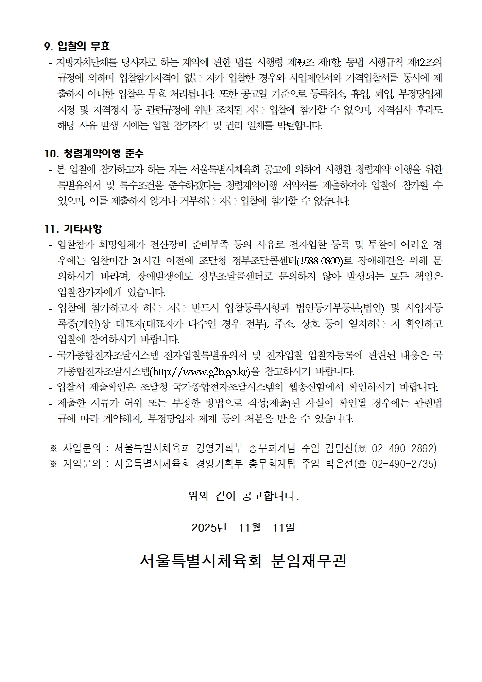 서울특별시체육회의 입찰공고를 보실 수 있습니다
