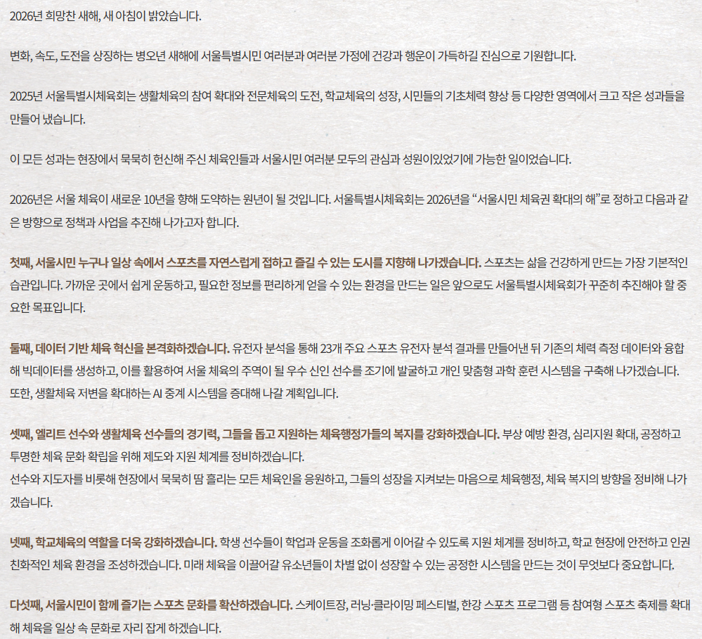 2026 강태선 서울특별시체육회장 신년사
