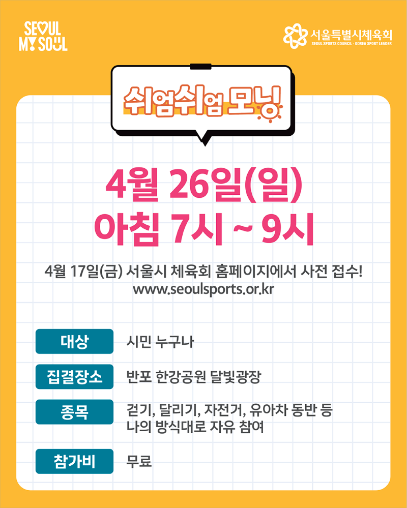 서울시체육회에서 마련한 쉬엄쉬엄 모닝 입니다.