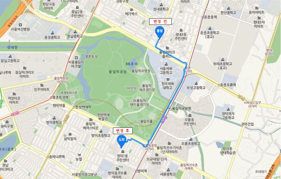 장소명 : 코리아 양궁클럽 (변경 전) 서울시 강동구 성안로 12 (변경 후) 서울시 송파구 방이동 193-17, 지하1층